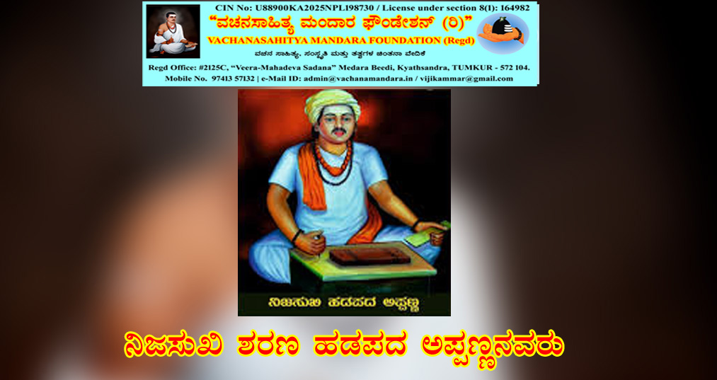 ಮಹಾನುಭಾವಿಯಾದ ಹಡಪದ ಅಪ್ಪಣ್ಣನವರು ಬೆಡಗಿನ ವಚನ ರಚನೆಗೆ ಹೆಸರಾದವರು. ಕಾಯಕನಿಷ್ಠೆ, ಜೀವನನಿಷ್ಠೆ ಹಾಗೂ ಸೇವಾನಿಷ್ಠೆಗಳಿಂದ ತಮ್ಮ ಕಾಯಕ ಮತ್ತು ಕುಲಕ್ಕೆ ಘನತೆ ಮತ್ತು ಗೌರವವನ್ನು ತಂದುಕೊಟ್ಟವರು. ಅಜ್ಞಾನದ ಕೂದಲೆಂಬ ಕಳೆಯನ್ನು ತಮ್ಮ ತತ್ವನೀತಿಯೆಂಬ ಕತ್ತಿಯಿಂದ ಚರಚರನೆ ಕತ್ತರಿಸಿ ಜ್ಞಾನದ ಬೆಳೆ ಬೆಳೆಸಿದವರು.